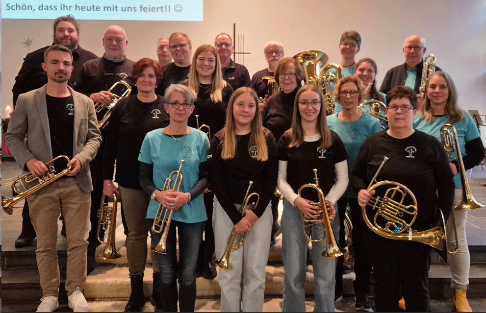 Wir sind ein Chor mit bis zu 18 Bläserinnen und Bläsern zwischen 12 und 87 Jahren.